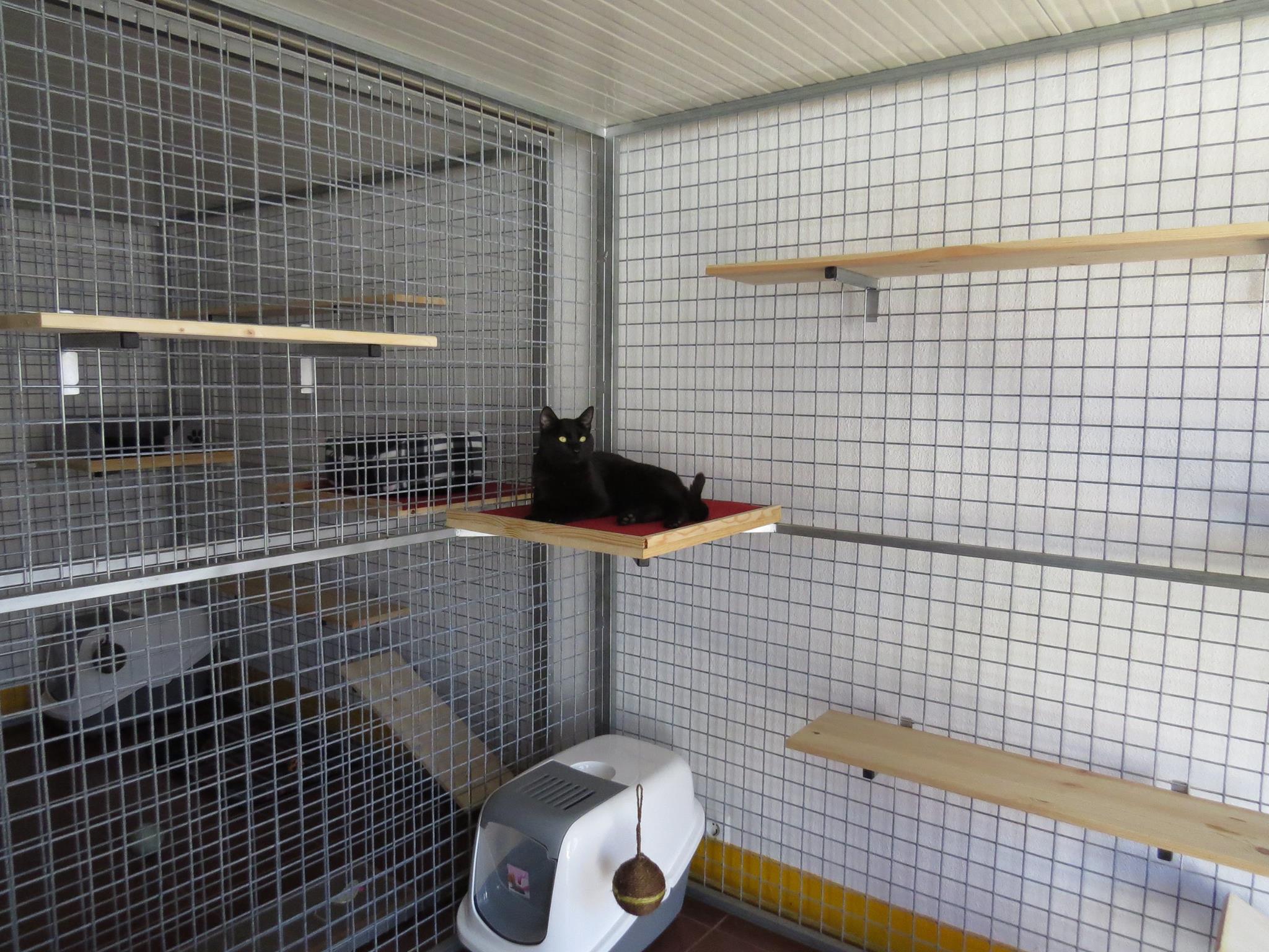 O gatil esta instalado no interior de uma ampla construção em alvenaria, é arejado, com ótima circulação do ar e claridade ajustável.